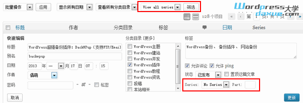 倡萌点评:超级简单的插件,但是效果不理想,只能在文章编辑界面操作系列,不便于批量操作