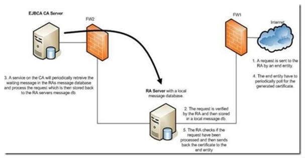 CA与RA分离(External RA )的部署模式,还可以退化成CA与RA部署在一起的模式,初期在安全性要求不高的情况下,基于成本及管理的方便,可以采用CA与RA一体化部署的模式。