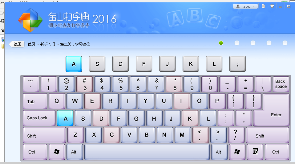 基准键位:基准键位就是在输入字符前或者输完字符后,手指应该放的位置。在键盘中有8个键称为基准键:“A S D F J K L ;” ,通常在输入字符时:左手和右手应当保持放在这些基准键位上。