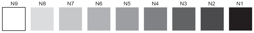 我们在判断辨别色彩明度时,常以无彩色的黑白及各种灰色作标准来对照。